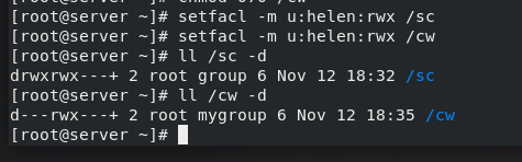(4)设置 helen用户对于/sc和/cw目录可以读,写,执行