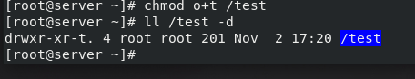 (5)设置/test目录为公共存储目录对所有用户可以读,写,执行,但用户只能删除属于自己的文件(t权 限)