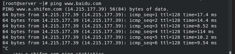 (2)测试网络连通性,看是否能够ping通百度,并把百度首页文件下载下来