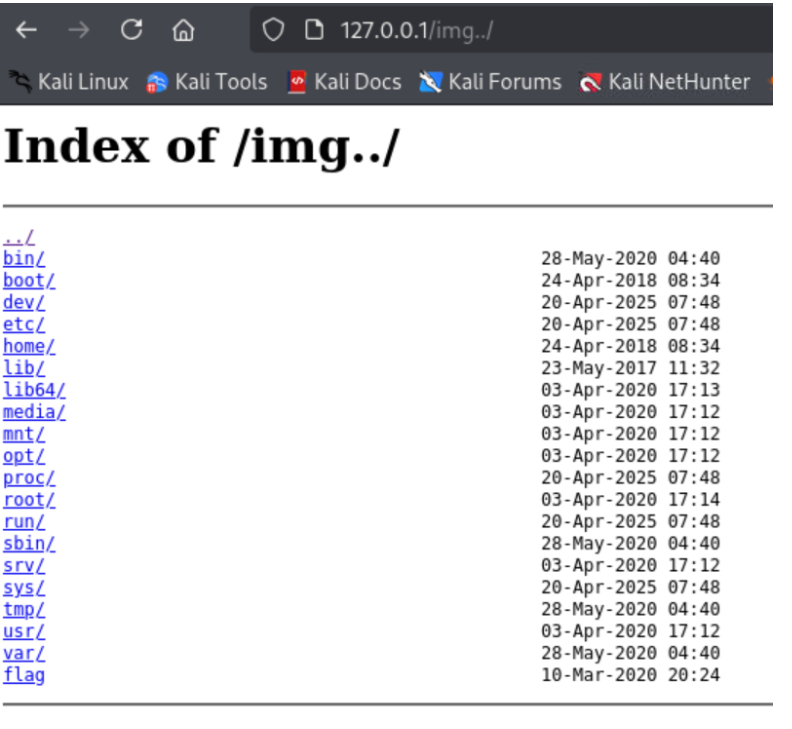 输入url:127.0.0.1/img../,成功进入上一级目录。