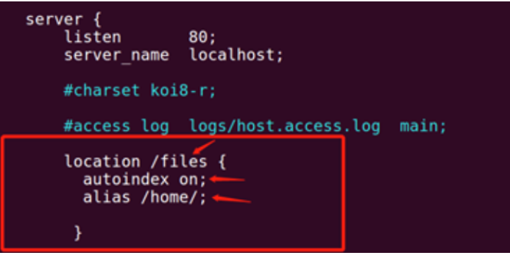 在如下配置中设置目录别名时/files时,那么当我们访问/files../时,nginx实际处理的路径时/file/../,从而实现了穿越目录。