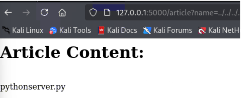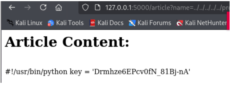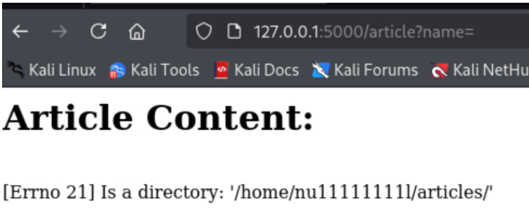 观察url:127.0.0.1:5000/article?name=以及页面可以判断存在文件包含。