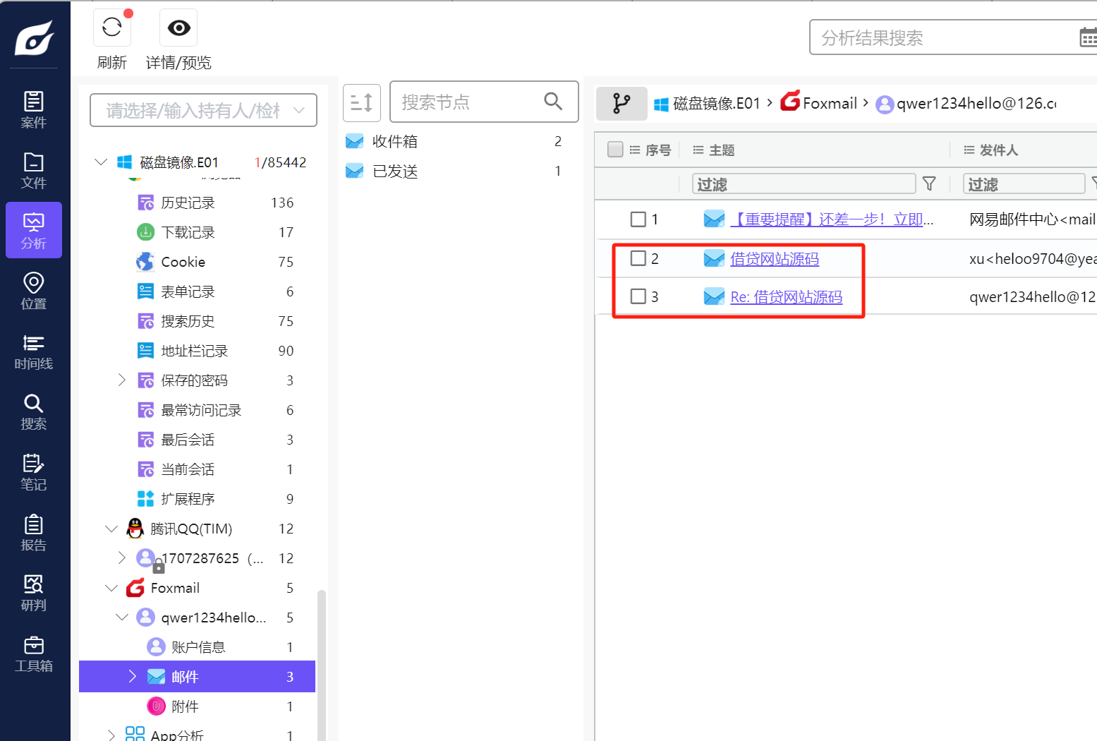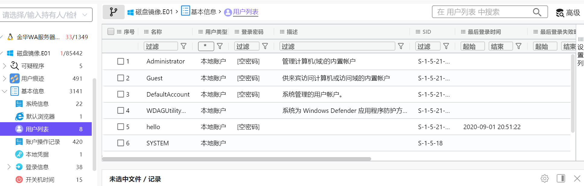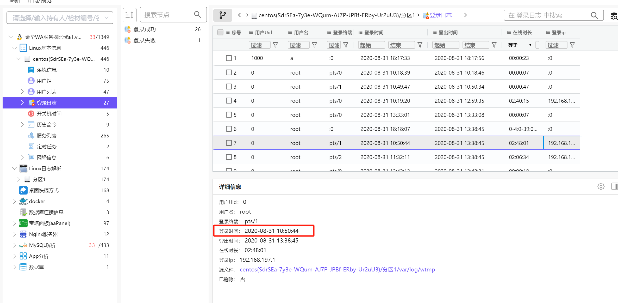 火眼证据分析查看登录日志。