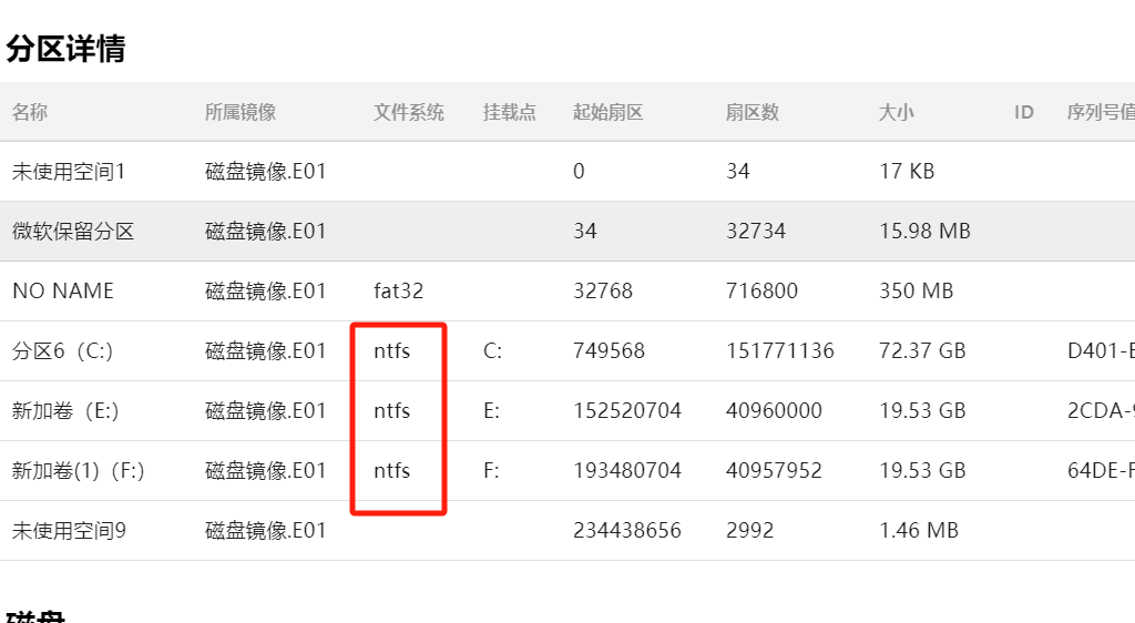 (这个在火眼的分区详情中也能找到)