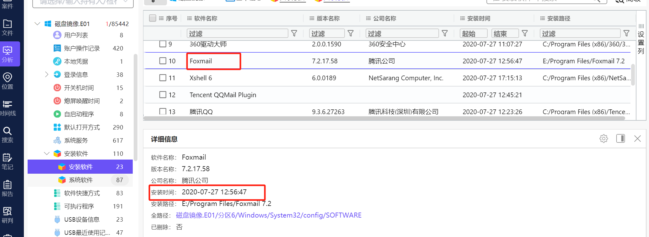 8.记录计算机Foxmail软件的安装时间