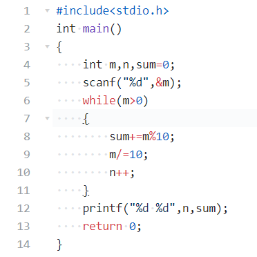 对于给定的正整数N,求它的位数及其各位数字之和
