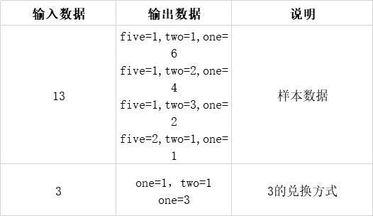 在日常生活中,我们常常需要将一些大额的人民币换算成零钱,已知我们有许多面值5元,2元和1元的人民币。