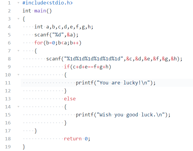 彩票的号码有 6 位数字,若一张彩票的前 3 位上的数之和等于后 3 位上的数之和,则称这张彩票是幸运的。本题就请你判断给定的彩票是不是幸运的。