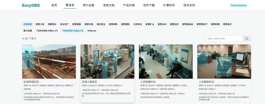 算法是AI的“灵魂”。EasyGBS内置的AI算法仓,如同一个开箱即用的“智能应用商店”。