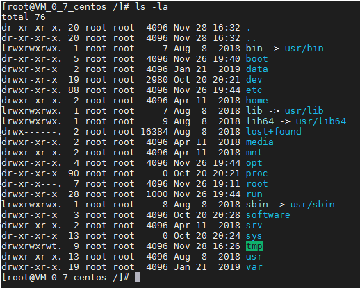 - 蓝色 ---> 目录 ,绿色 --> 可执行文件 , 红色 --- > 压缩文件 , 浅蓝色 ---> 链接文件 , 灰色 --> 其他文件