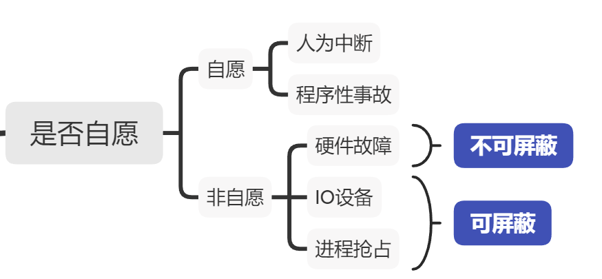 其实程序运行好好的没想停止,可是用户或者其他进程等不及了,快点啊麻溜的,所以程序不得已中断。可能发生在任何时间任何部分。喊话让当前程序滚出去的叫做中断源,中断源可以分为不可屏蔽中断,比如电源掉电;另一类叫做可屏蔽中断,比如进程抢占。对于可屏蔽的中断CPU有最终裁决权。
