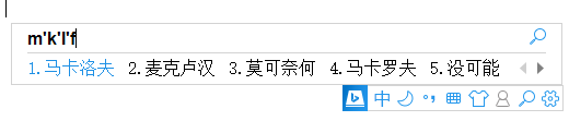 必应无法快速输出,搜狗虽然可以输出但不会排列在首位,例如“mklft 迈克罗夫特”