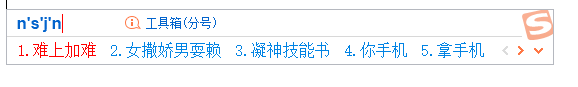 于必应,比如上图输入“nsjn”,必应虽然也在第二个候选框识别出了,但是剩下的候选词完全