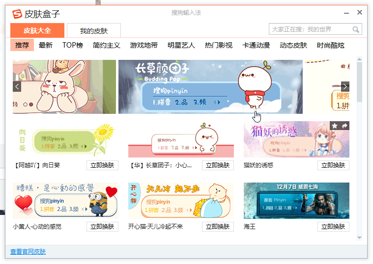 而搜狗输入法的皮肤数量和质量上都有很大的优势