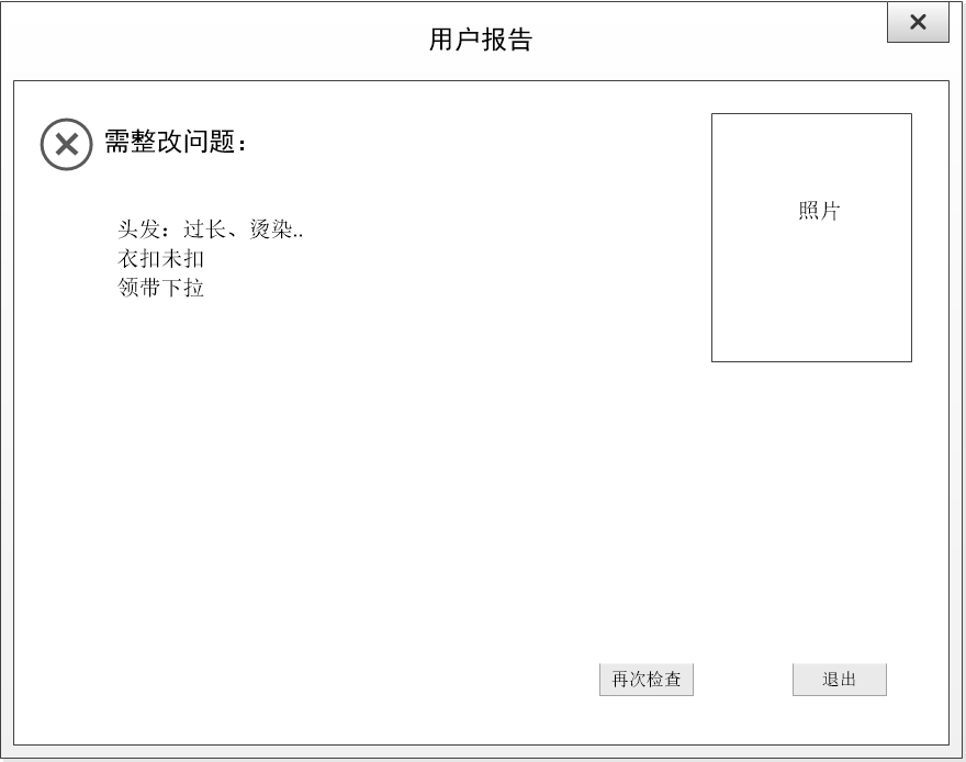 (2)待检测目标确立后,未进行反面人身图像拍照,目标丢失——不进行头发检测,并显示头发是否符合军容风纪未进行检测。