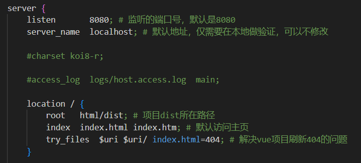 1.将build生成的dist目录复制到nginx下的html目录中。