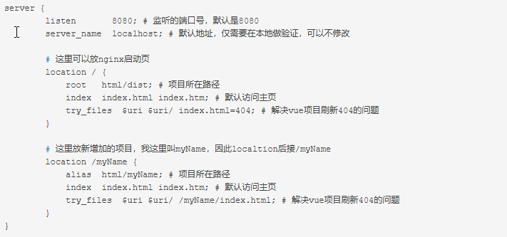 4.第二种:因为nginx可能会部署多个项目,针对不同项目增加配置是一种很正常的操作。(需要新增一个location)