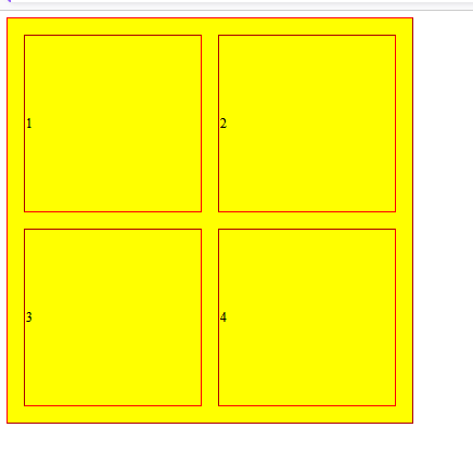 <table border="1px" width="500px" height="500px" bordercolor="red" bgcolor="yellow" cellspacing="20"><!-- 创建表格 --> <tr> <!--tr表示行 --> <td>1</td> <!--td表示单元格 --> <td>2</td> </tr> <tr> <td>3</td> <td>4</td> </tr> </table>