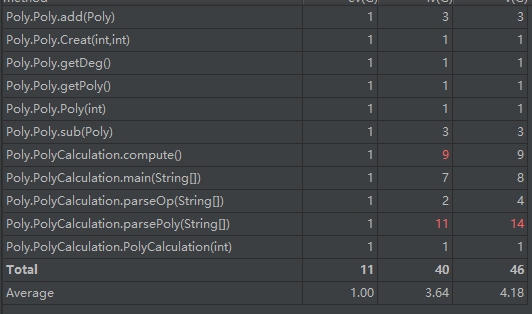 作为没有接触过Java的新手,在听完第一节OO理论课之后,我认为首要是得有思维上的转变,从过去写C的过程式思维转换为面向对象式的思维模式,什么是对象?为什么要引入对象?面向对象的编程思维是怎么样的?以及如何去设计实现?于是,根据自己浅薄的理解,我开始了我的第一次尝试,在第一次作业“多项式加减运算”中试着向其靠拢,以下是第一次作业程序的度量和类图:
