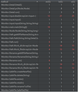 从上图可以看出,除了输入处理这一块,包含rename和path-changed的监控作业也较为复杂,相应的设计实现有些繁琐,,当时也是偷懒并没有依据功能进行分类整合,于是就用了很多的分支判断语句。本次作业由于涉及文件操作,在编码过程中用Safefile将File的部分功能重新包装,来避免文件类方法使用时存在的安全隐患。