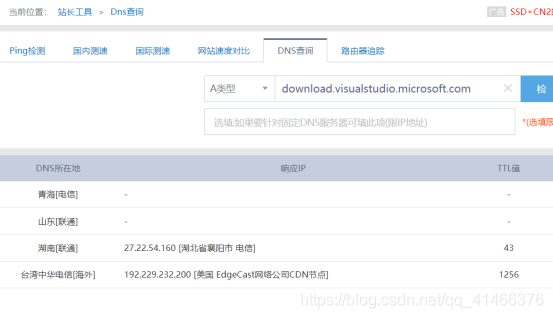 1、去站长之家查找download.visualstudio.microsoft.com 的比较快的 DNS