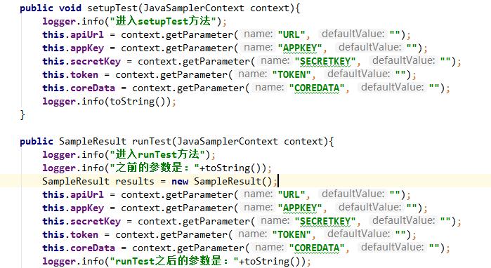 在runTest方法中需要重新获取传入的参数,项目中遇到的一个问题就是自定义的JavaSamplerClient类里的参数只能在第一次才能传入参数正确,后来传入的参数都不能被正确地使用,经过排查原因就在于只在setupTest中获取了参数,在runTest方法中没有再次获取参数,这样就导致runTest中使用的仍是初始值,而不是新传入的参数。
