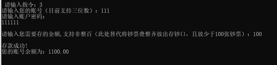 printf("存款成功!\n");