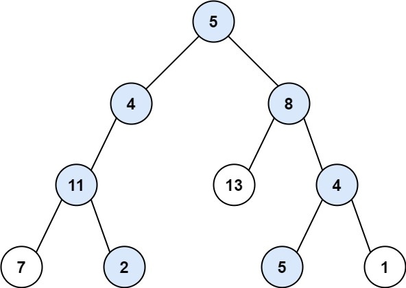 输入:root = [5,4,8,11,null,13,4,7,2,null,null,5,1], targetSum = 22