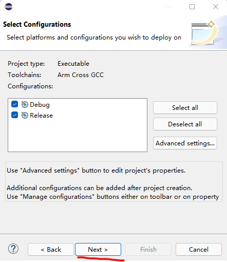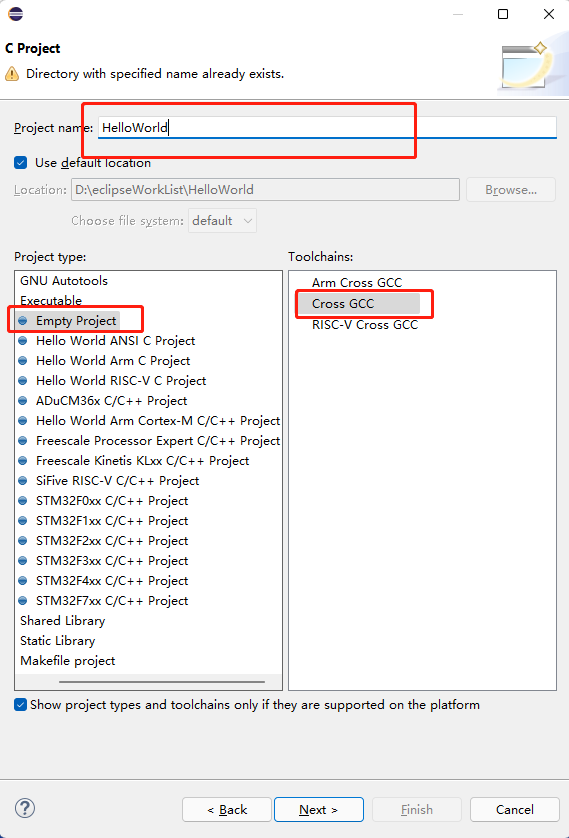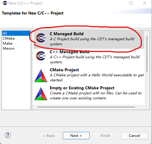 打开eclipse 创建项目 File->New->C/C++ Project->C Managed Build