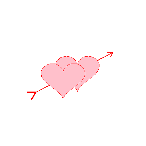 plot.new() plot.window(c(-40,40), c(-40,40)) arrows(x0=-35*cos(pi/6),y0=-35*sin(pi/6), x1=30*cos(pi/6),y1=30*sin(pi/6),angle=30,code=2,col="red",lwd=2)#通过arrows()函数绘制箭头及箭身 segments(x0=-35*cos(pi/6),x1=-35*cos(pi/6)-6, y0=-35*sin(pi/6),y1=-35*sin(pi/6),col="red",lwd=4) segments(x0=-35*cos(pi/6)-6*cos(pi/3),x1=-35*cos(pi/6), y0=-35*sin(pi/6)-7*sin(pi/3),y1=-35*sin(pi/6),col="red",lwd=4)#通过两个segments()函数绘制箭尾 xspline(x, y, col = "pink", open = FALSE, shape = 2, border = "red")#添加爱心1,当然也可以通过polygon()函数绘制 xspline(x2, y2, col = "pink", open = FALSE, shape = 2, border = "red")#添加爱心2