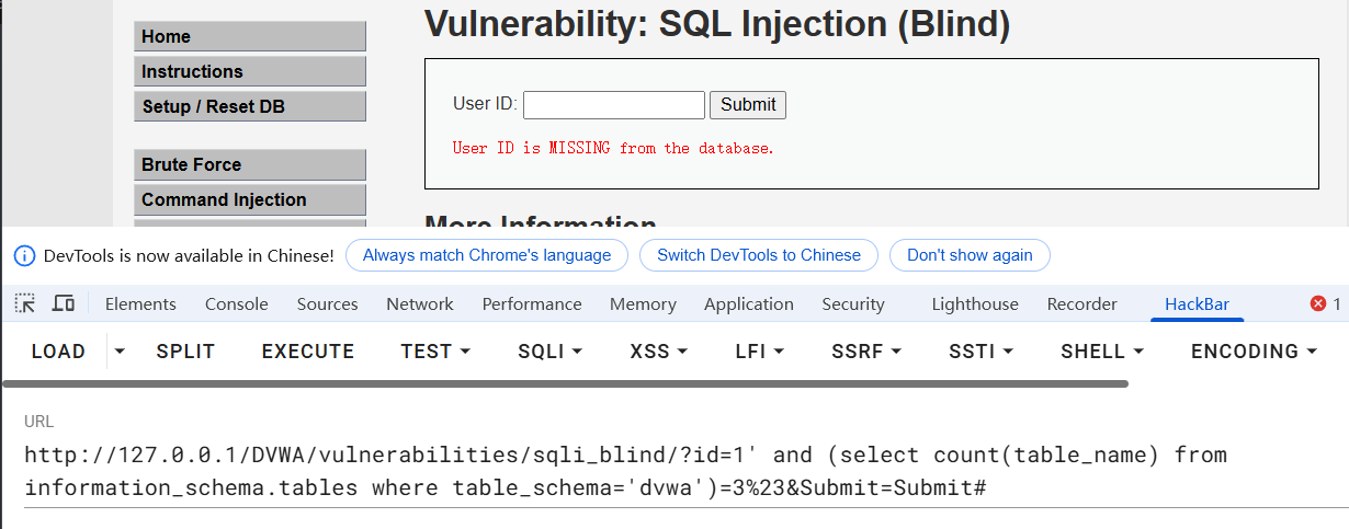 布尔盲注 DVWA SQL Injection(Blind) Low