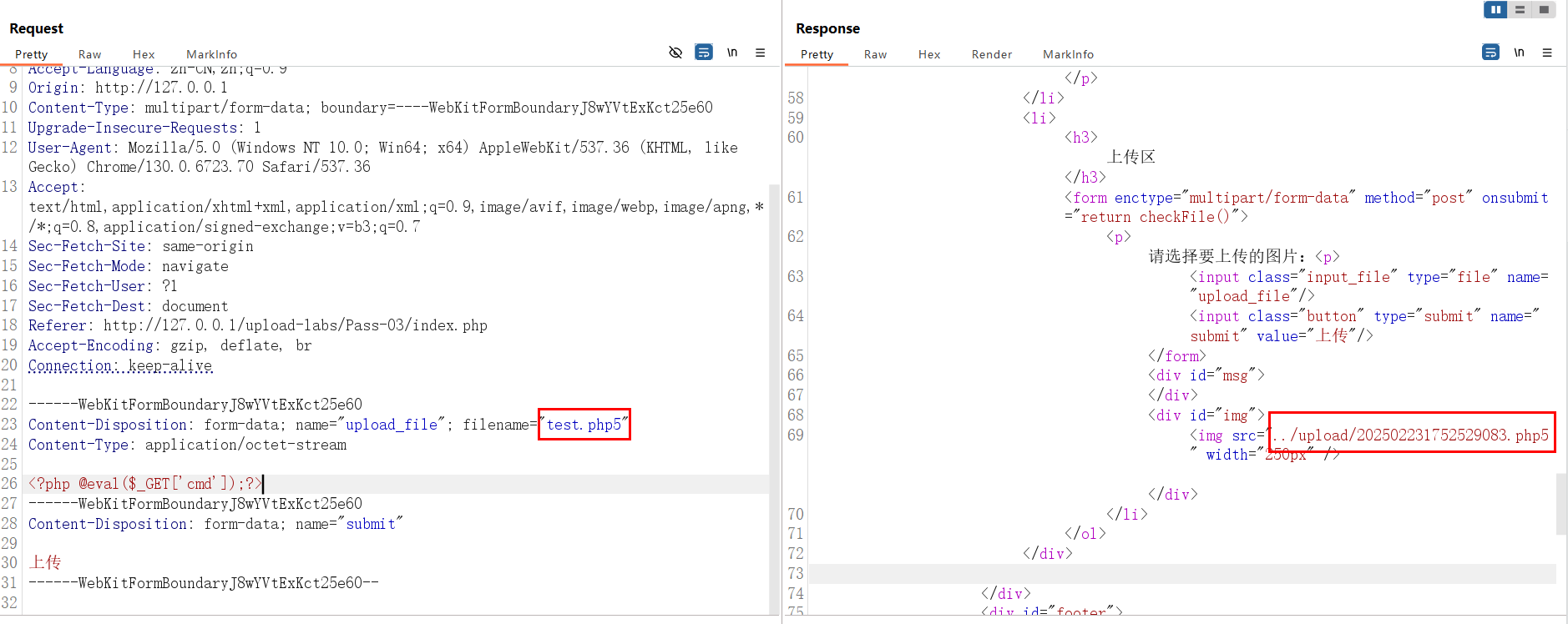 - 尝试访问webshell 文件成功 http://127.0.0.1/upload-labs/upload/202502231752529083.php5