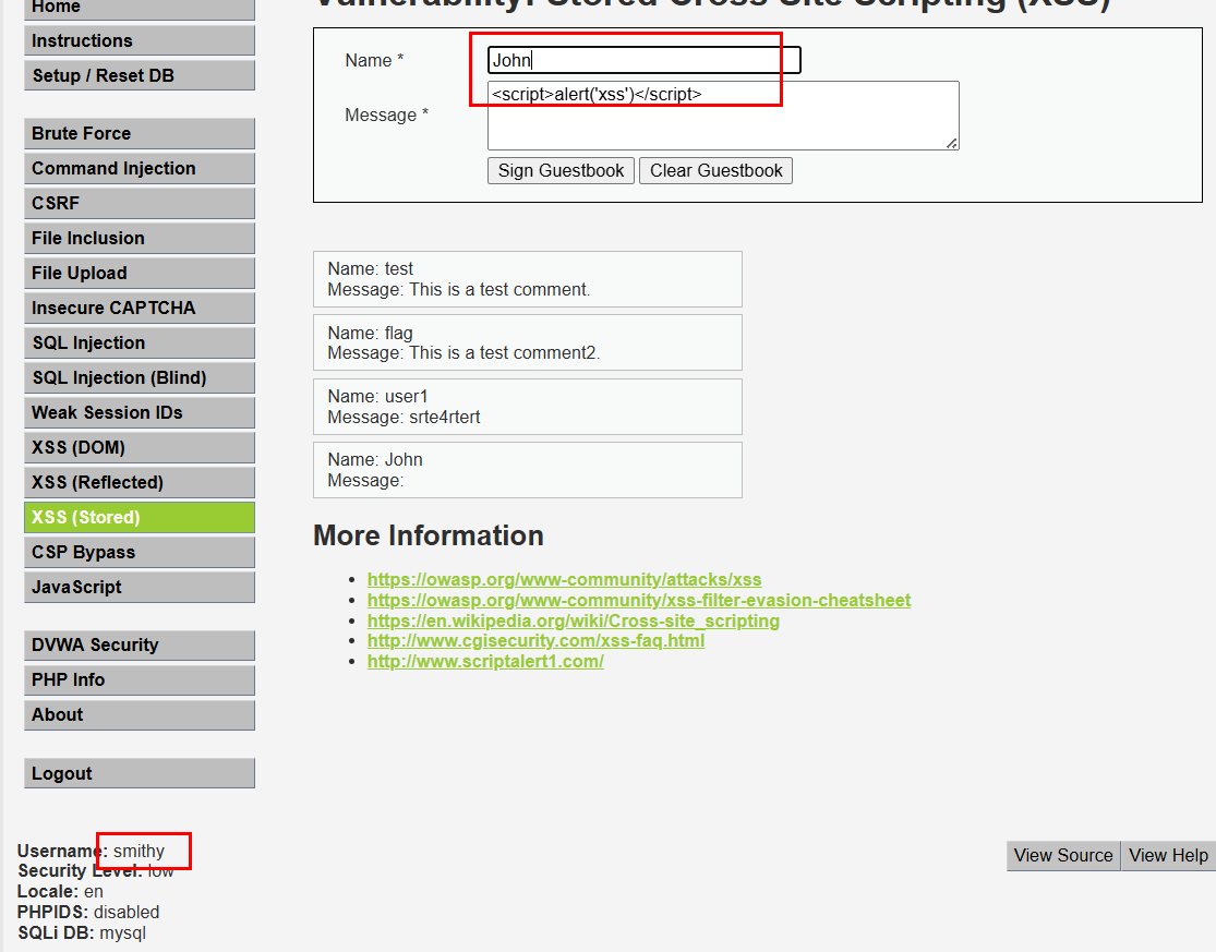 - 用户smithy 留言中添加了alert 消息,并出现弹窗