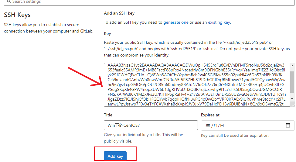 使用cat 命令读取 ssh的公钥 然后在gitlab 后台登录上账户 然后再后台进行配置ssh 的公钥