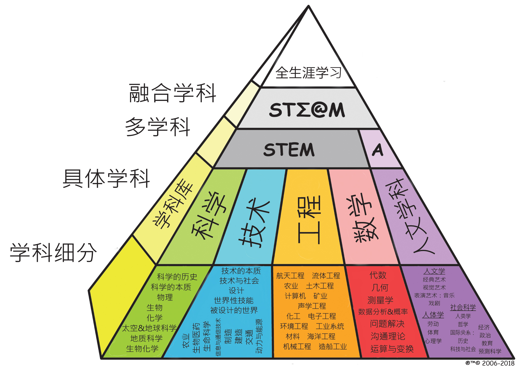 概念:Georgette Yakman is the founding researcher and creator of STEAM education. In 2006, she developed the framework and began implementation in 2007 as a middle and high school Engineering & Technology teacher. STEAM 教育在原有STEM 教育基础上加入了艺术,有助于学生从更多视角认识不同学科间的联系,提高自身综合运用知识解决现实问题的能力。