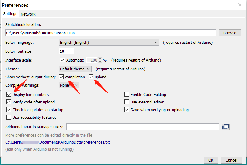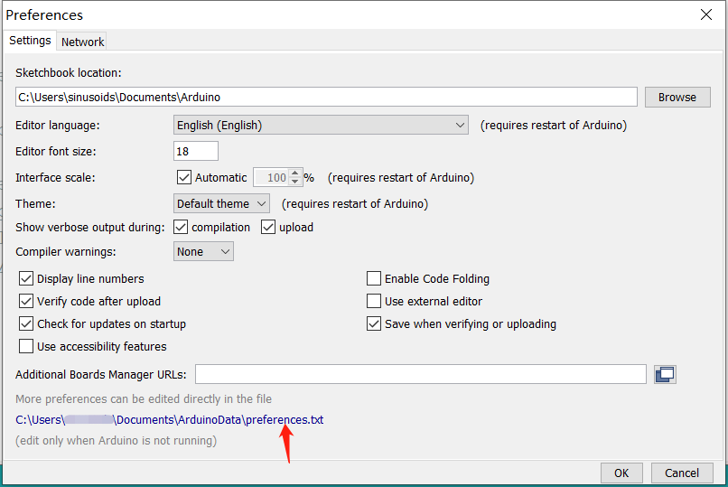 tip: close Arduino IDE before you edit the "preferences.txt"
