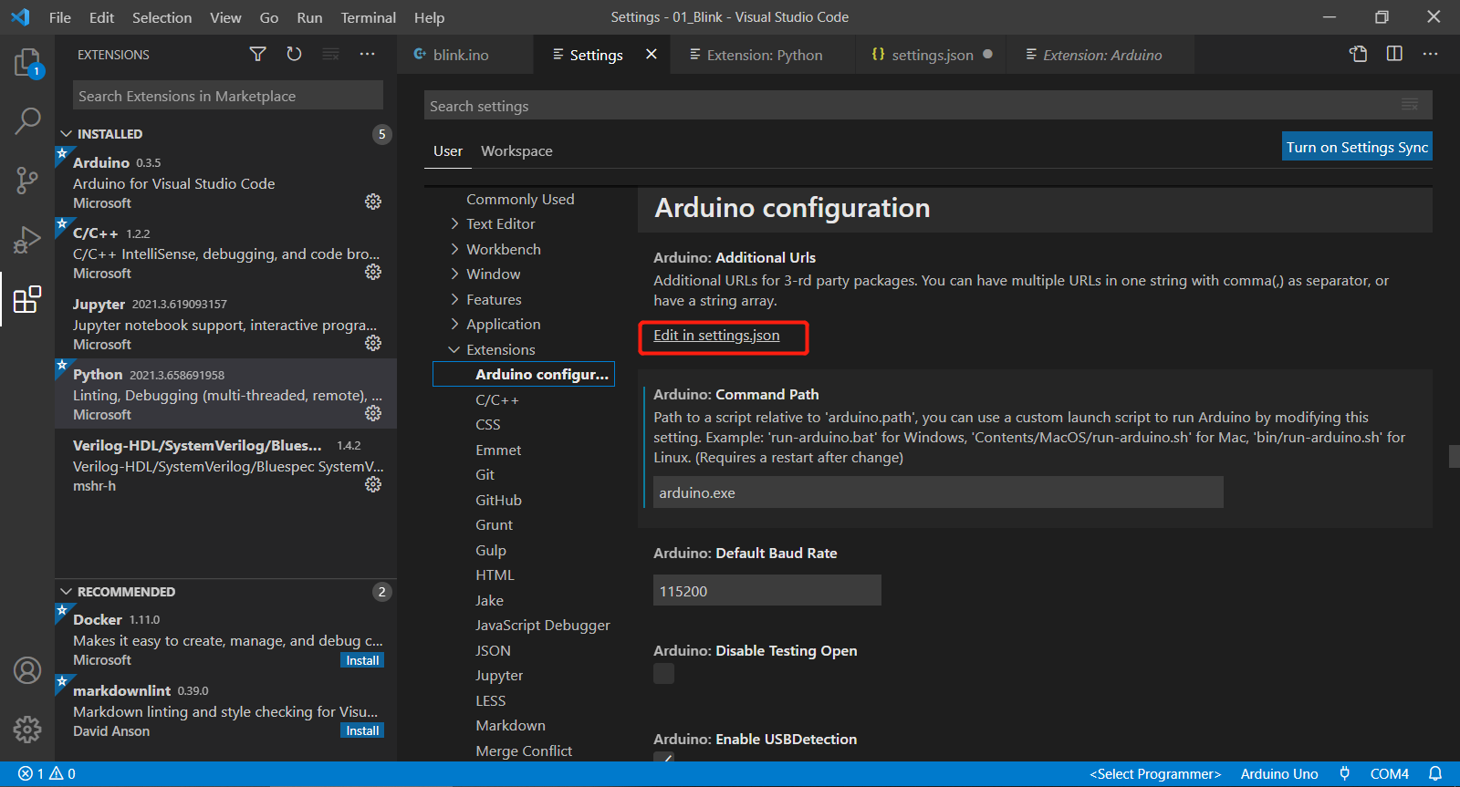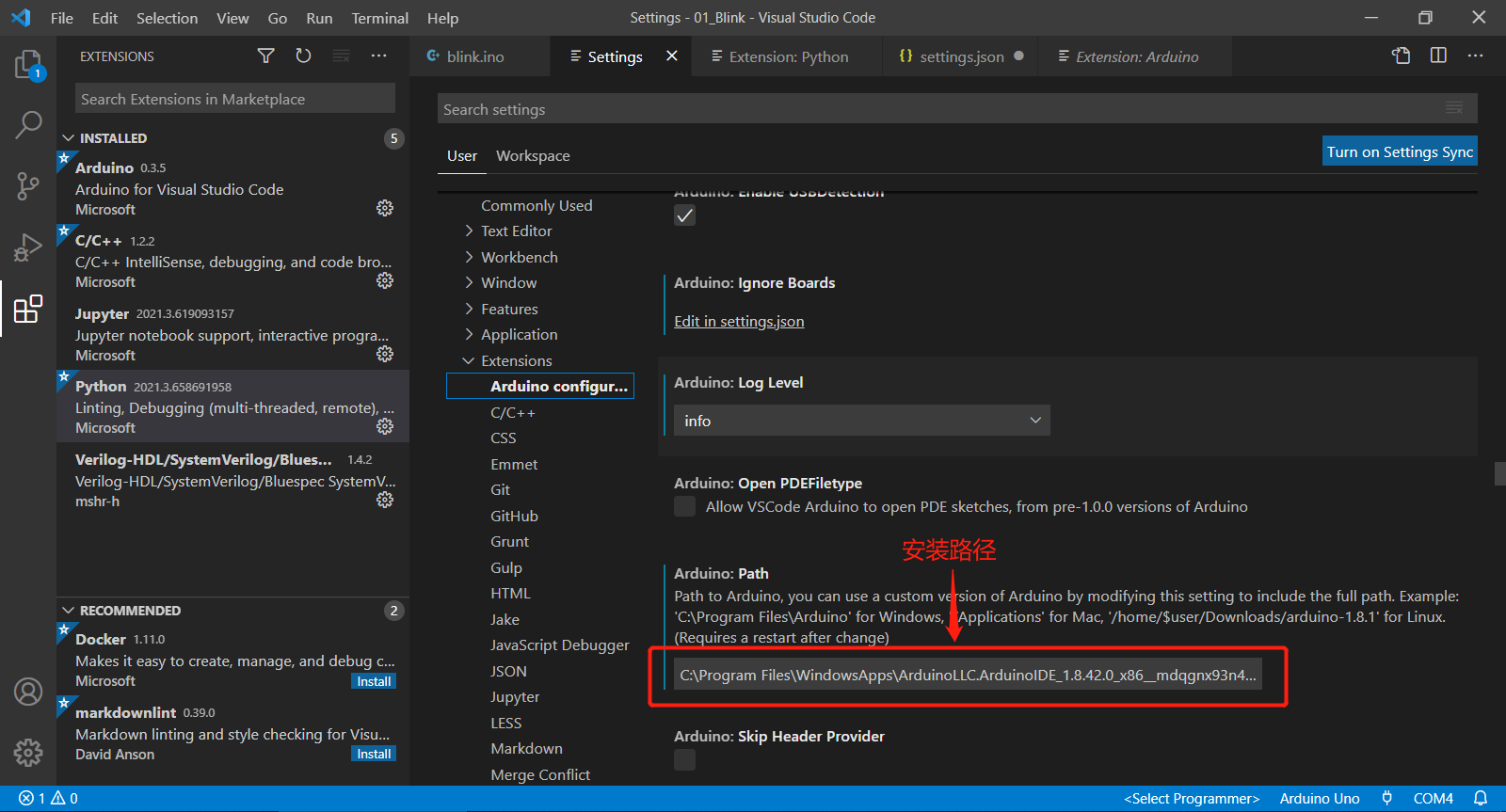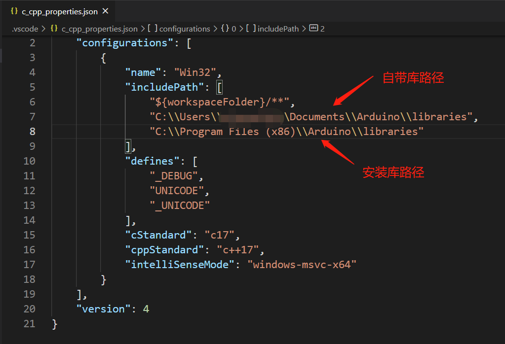 5. 在c_cpp_properties.json中添加Arduino IDE库的路径