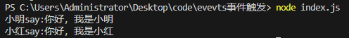var events = require("events")//引入events模块 var eventEmitter = new events.EventEmitter() //创建事件触发器 eventEmitter.on("someEvent",function(a){ console.log("someEvent事件触发,参数为"+a) //监听someEvent事件,并打印参数a })eventEmitter.emit("someEvent","参数a") //触发someEvent事件,并传入参数a