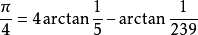 第一个快速算法由英国数学家梅钦(John Machin)提出,1706年梅钦计算π值突破100位小数大关,他利用了如下公式: