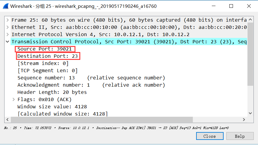 7.查看抓的包。这里基本应该提取出的信息是Telnet使用的是23号端口,而源端口是随机分配的。
