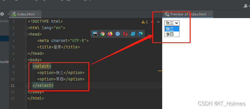 注意:在ul标签里面除了li标签,最好不要使用其他的标签。或者将想要创建的标签放到li下面如下。