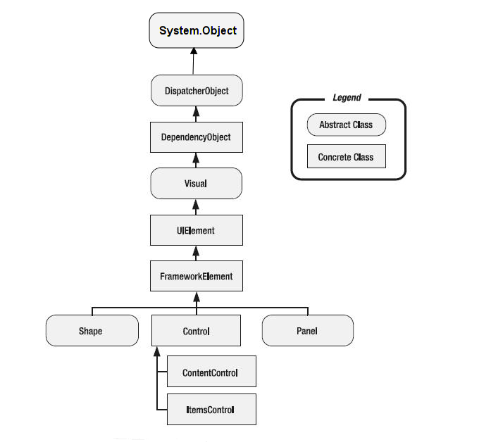 WPF几乎所有的控件都从上面这五个父类继承,它们的相互继承关系,形成了一棵树。