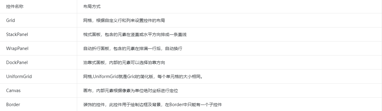 WPF提供了六个用于UI布局的Panel子类,分别是:Grid、StackPanel、WrapPanel、DockPanel、 VirtualizingStackPanel和 Canvas。