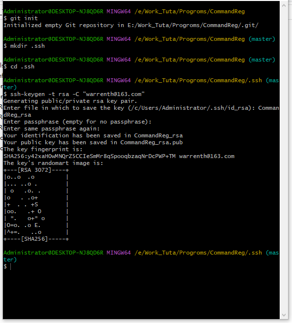 输入以下 ssh-keygen -t -rsa -C "youremail@example.com" 回车 输入填入的密钥名称
