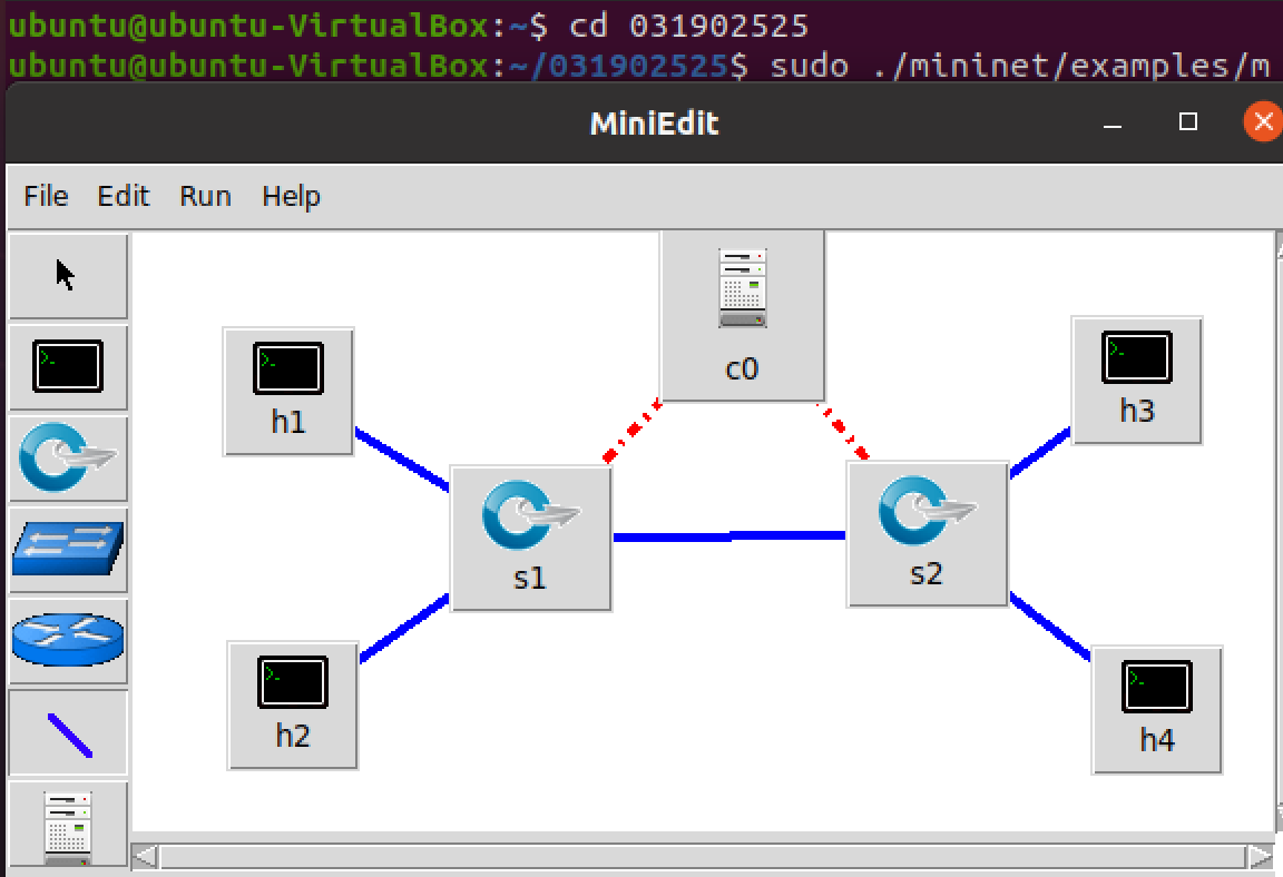 - 使用Mininet可视化工具搭建的SDN拓扑