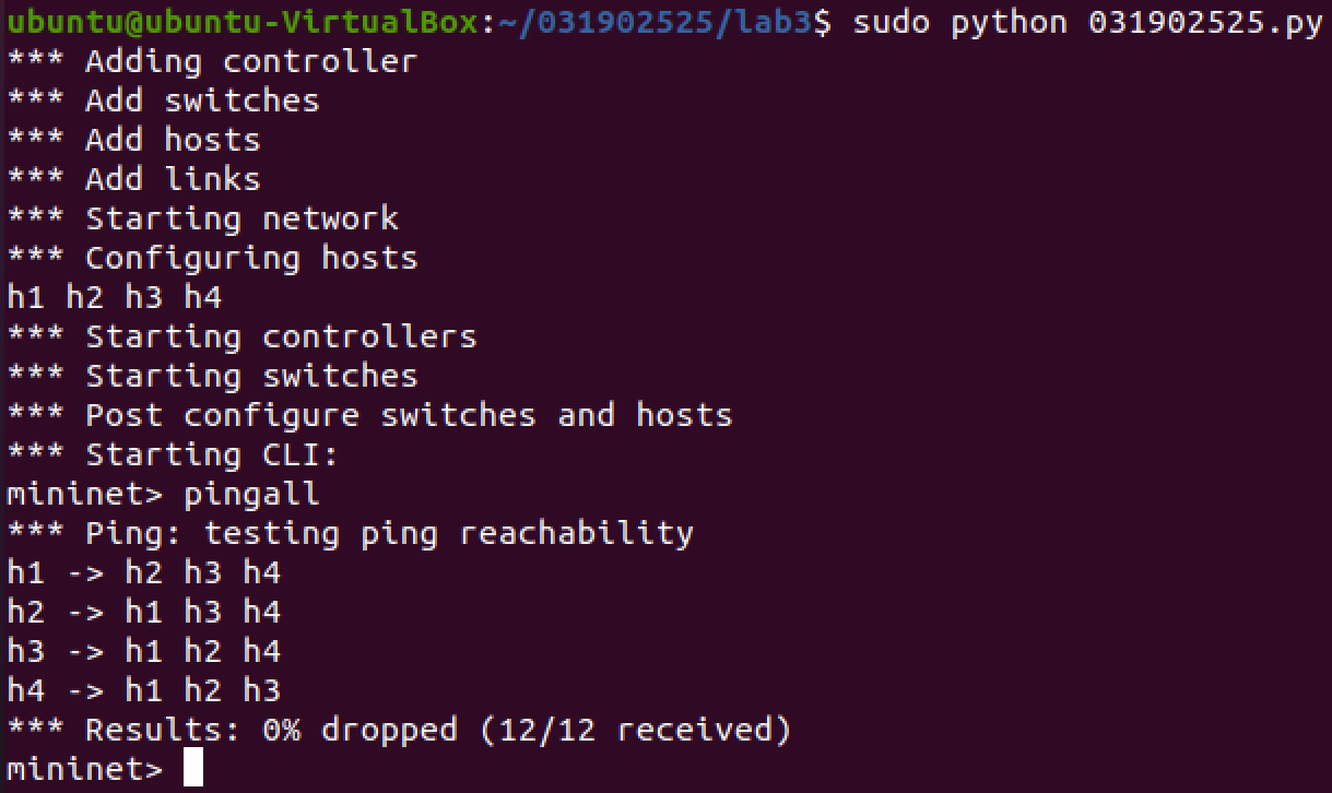 - 搭建下图所示拓扑,完成相关 IP 配置,并实现主机与主机之间的 IP 通信。用抓包软件获取控制器与交换机之间的通信数据包。