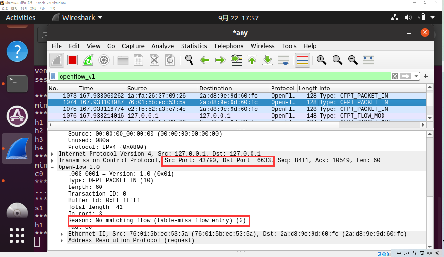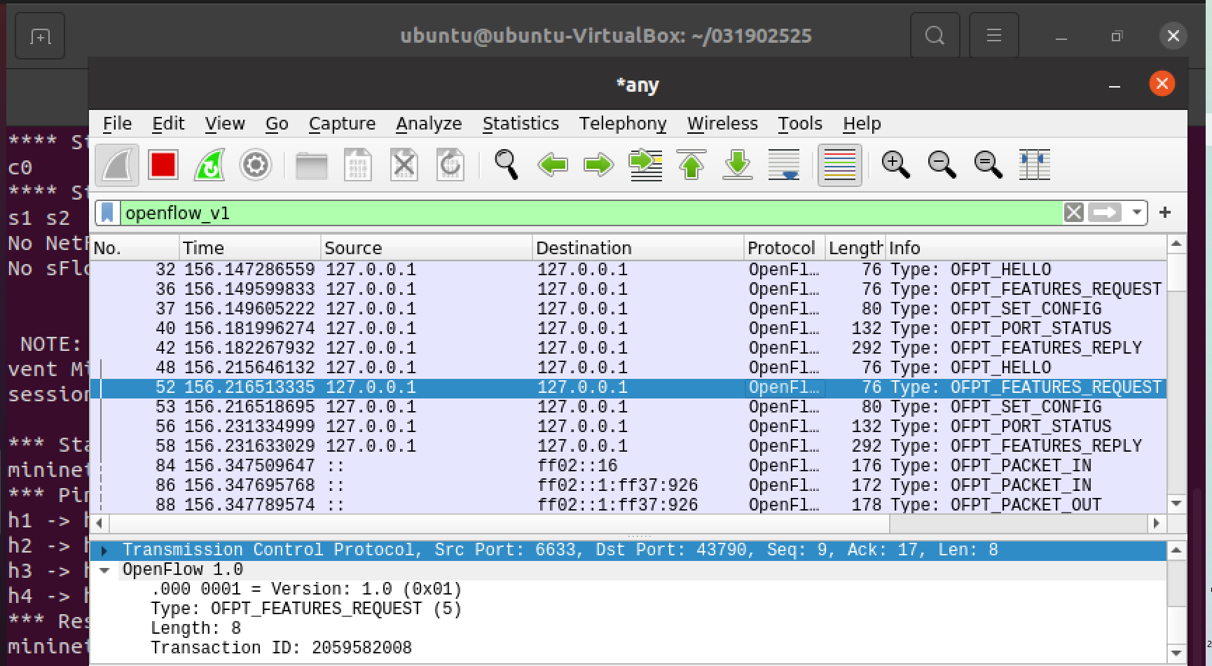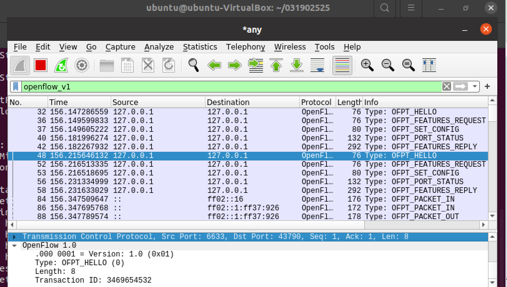 - 能够运用 wireshark 对 OpenFlow 协议数据交互过程进行抓包;