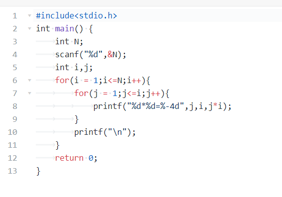 1.1打印九九口诀表,本题要求对任意给定的一位正整数n,输出从1*1到n*n的部分口诀表。