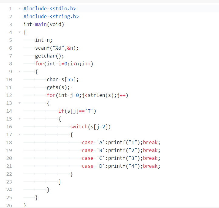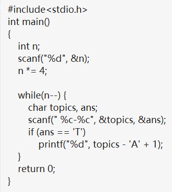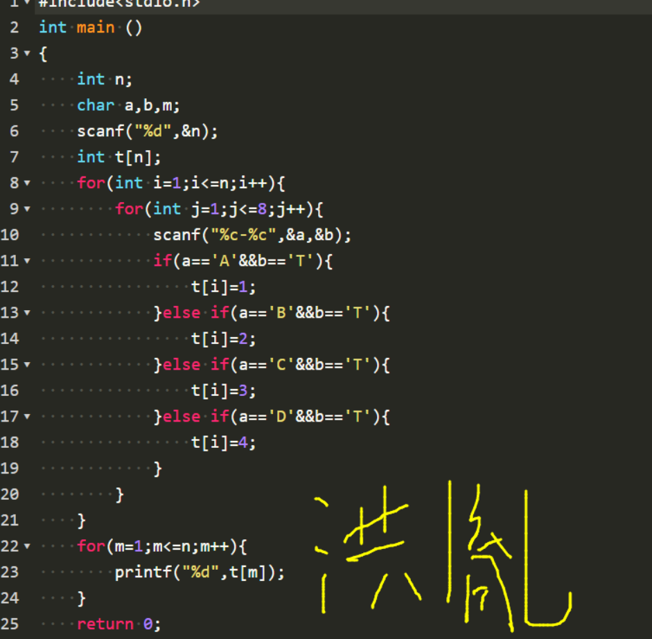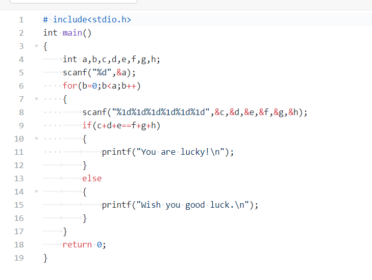 数据表达:定义整形变量a,b,c,d,e,f,g,h,其中a由scanf输入,b为for循环的初始值,c,d,e,f,g,h为循环中的输入值