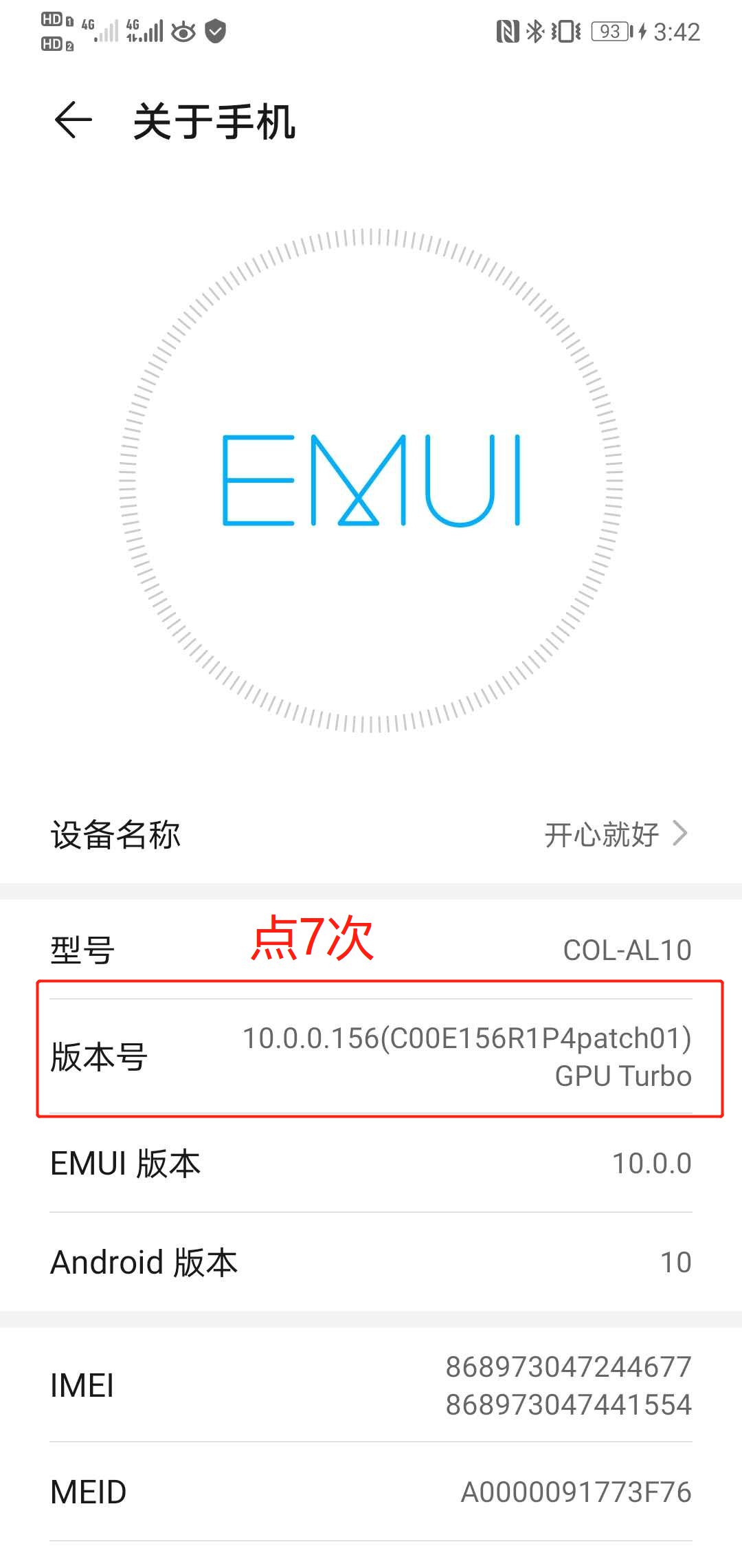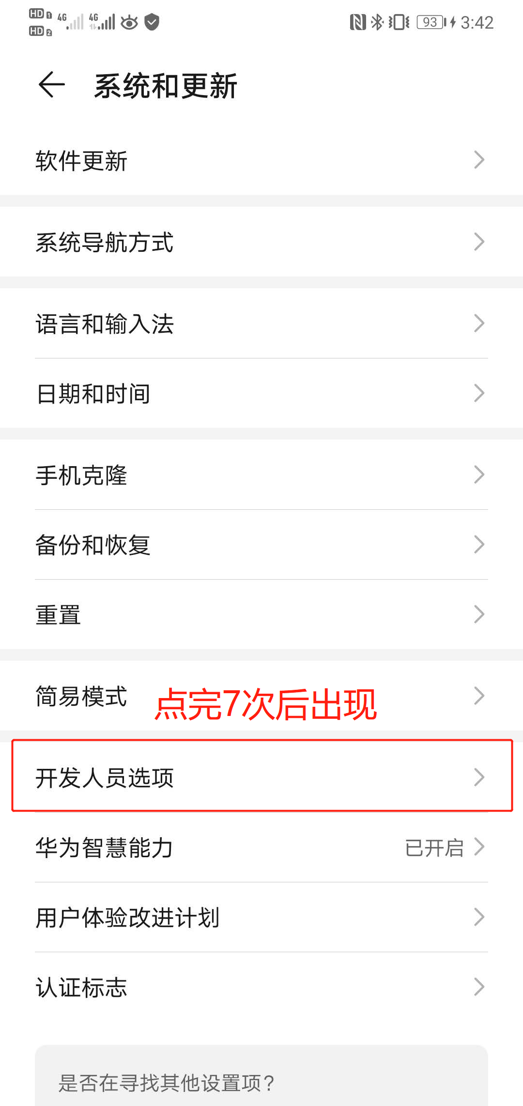 3、在设置->("系统"->)"关于手机"点击版本号7次,之后返回“系统”,就会出现“开发人员选项”